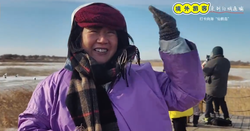 “看到了丹顶鹤,天空又很蓝,虽然现在是冬天,很冷,但也是很享受的……”近日,新加坡游客叶巧明与亲朋好友一起来到吉林省,打卡向海“仙鹤岛”,在阵阵鹤鸣声中,看丹顶鹤在湛蓝的天空下自由翱翔,近距离拍摄丹顶鹤,与它们互动,一切的一切,让叶巧明兴奋不已。