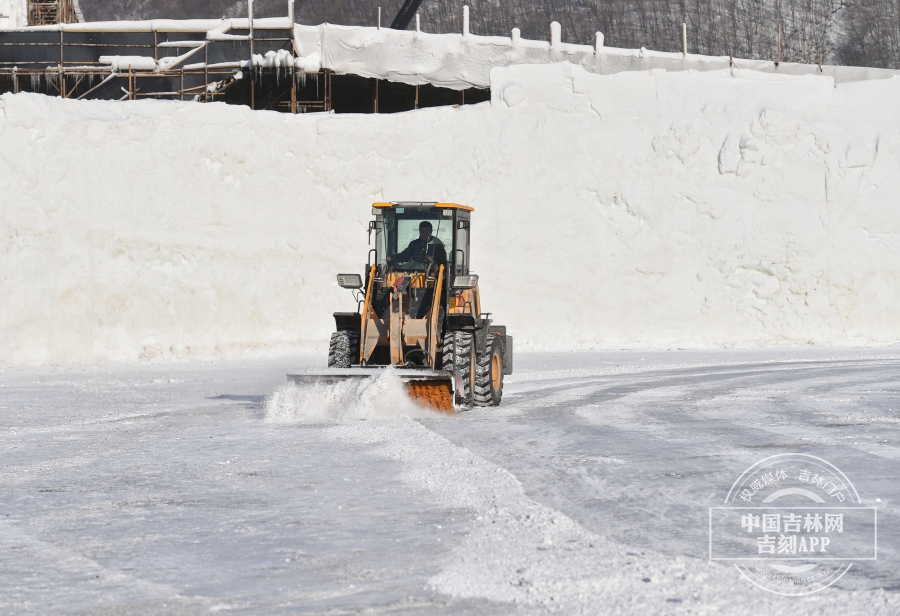 1月19日下午,彩排结束了,但映山红广场依旧“热闹非凡”,清雪车还在不停地工作。“需要最后清理一下场地,让场地更加平整,让参加比赛的选手们能够更好地发挥!”现场工作人员介绍说。
