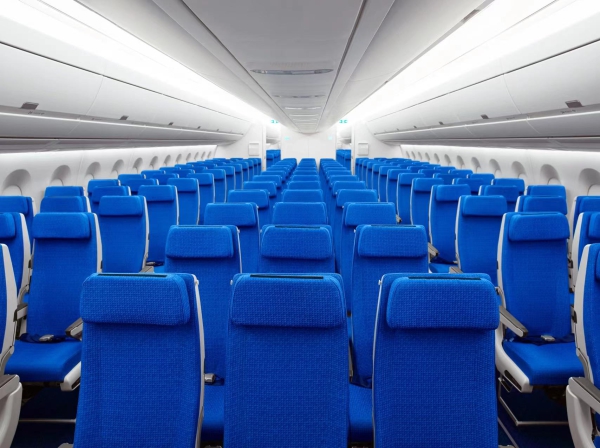 新投入的宽体机,具有大直径机身客舱,客舱内有两个过道,可利用的座位更多,座椅宽敞、空间阔绰,载客量最高达300人以上。其公务舱座椅可以平躺,为长途飞行提供更舒适的体验。