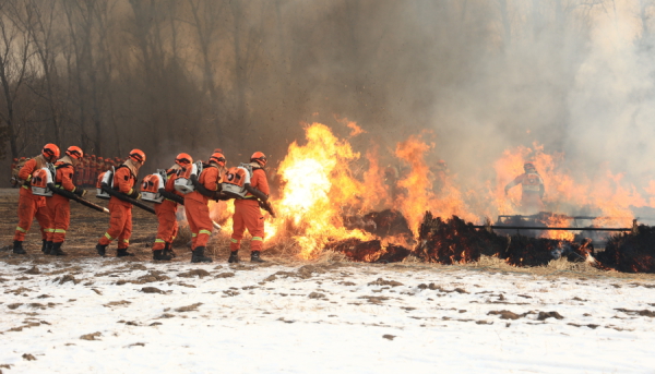 “爆破手采取灭火弹压制火势,一组队员利用强攻推进战法多路并进、分段扑打。”训练场上,灭火装备操作实战训练正在有序进行。只见新消防员们跃火墙、跨火栏、冲火廊、入基地、穿火林、过火木,大家毫无畏惧冲进火场,直面火魔,攻克恐惧心理。经过100天的训练,新消防员灭火装备操作技能已基本掌握。