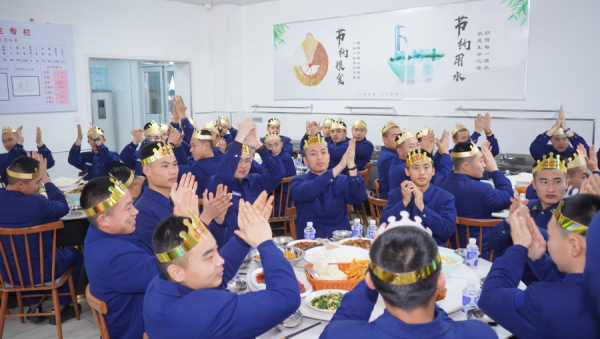 今年春节,对新训大队的战友们来说有着特殊的意义,因为他们大多数是第一次在新训队过年,是新战友们在军营度过的第一个年,也是很多人第一次离开父母在外过年。开训以来,大队坚持每月举办一次集体生日会,1月17日,又恰逢新消防员入职100天,举办的新蓝百日集体生日会,意义更加特殊。家属暖心的祝福视频、战友齐唱的生日歌曲、烛光下的共同许愿、领导真情的关怀,让全体新消防员感受到了新训大家庭的温暖,同时也坚定了他们投身消防救援事业的信心与决心。