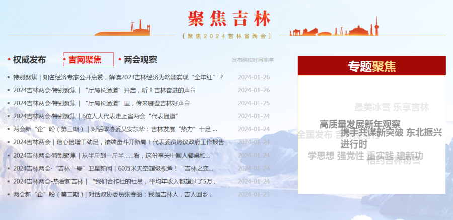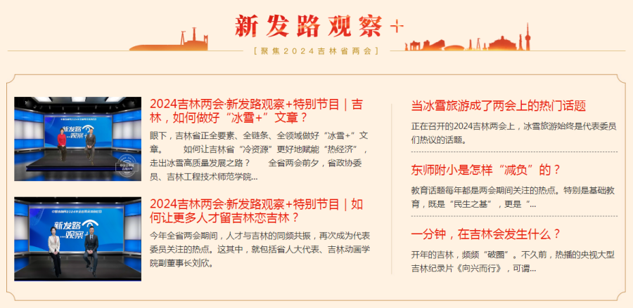 早在省两会开幕前夕,中国吉林网就提前策划,推出“2024吉林两会·新发路观察+”栏目,盘点2023年吉林省的重点工作 ,梳理热门话题,邀请省人大代表、省政协委员、各行业专家做客直播间,就公众最关心的教育、文旅等方面内容畅所欲言,视频和文字稿件发布后,得到了广大网友的广泛关注。
