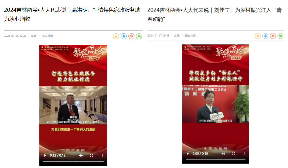 2024吉林两会期间,中国吉林网还推出”2024吉林两会·我从基层来”“两会新‘企’盼””2024吉林两会•混剪两会1+1“”2024吉林两会•特别聚焦“等一系列短视频产品,在全网引起极大关注。