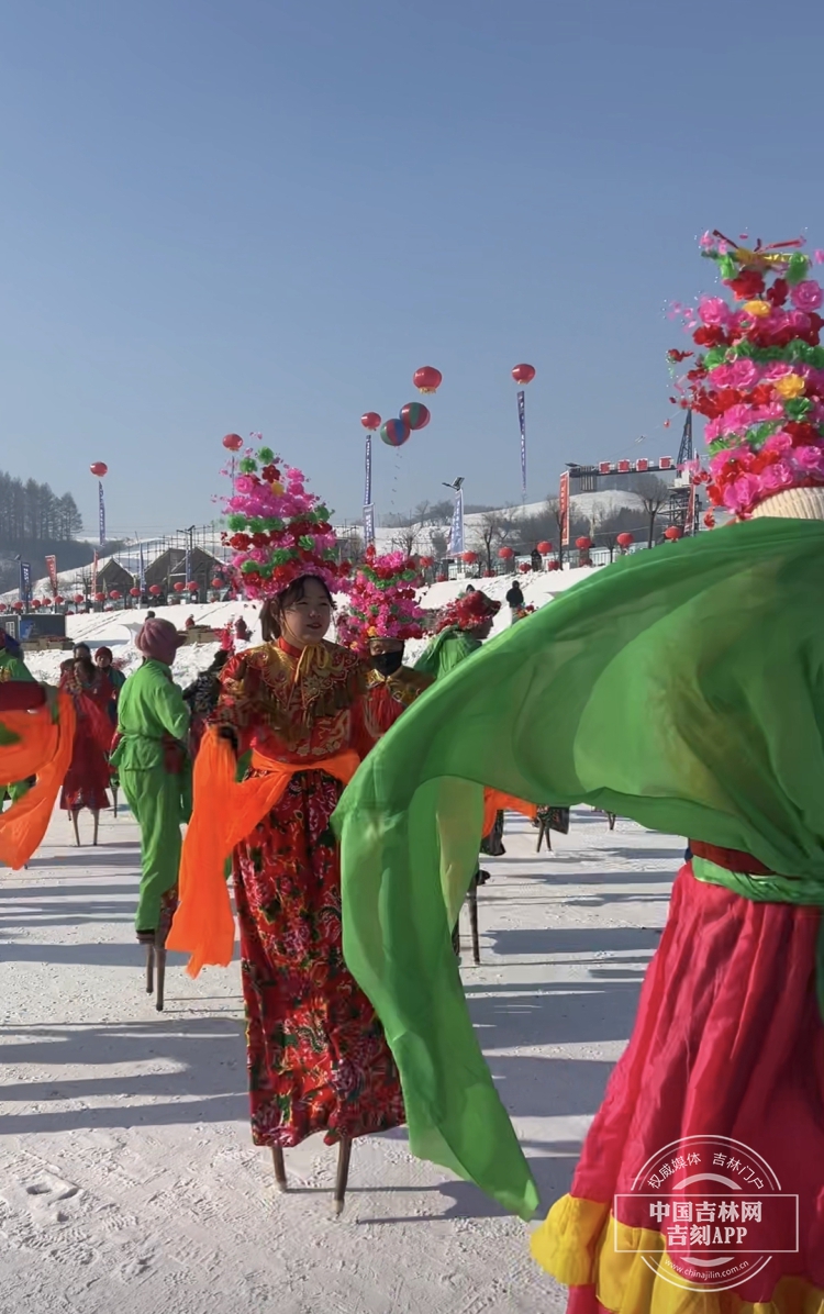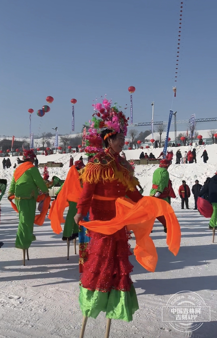 1月30日9时许,首届中国·吉林松花江滑冰马拉松挑战赛暨全国全民健身大拜年主会场活动开幕前,参演的高跷队抵达现场,伴随着欢快的音乐声,在雪地上踩起了高跷。