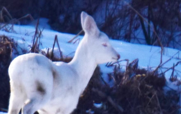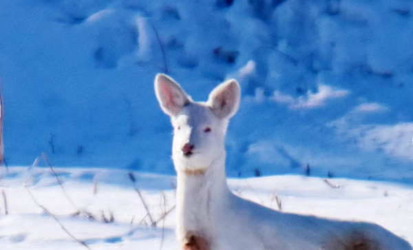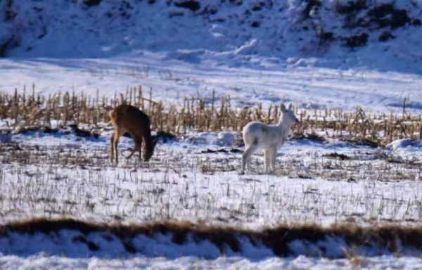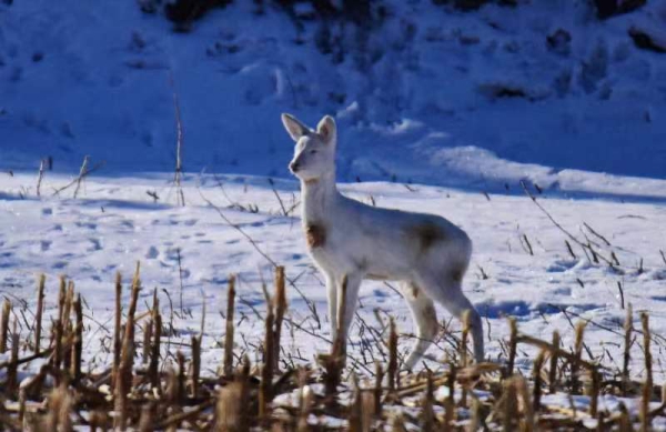 2月7日,吉林省公安厅森林公安局天桥岭森林公安分局民警在巡护途中拍摄到一只罕见的白狍个体。