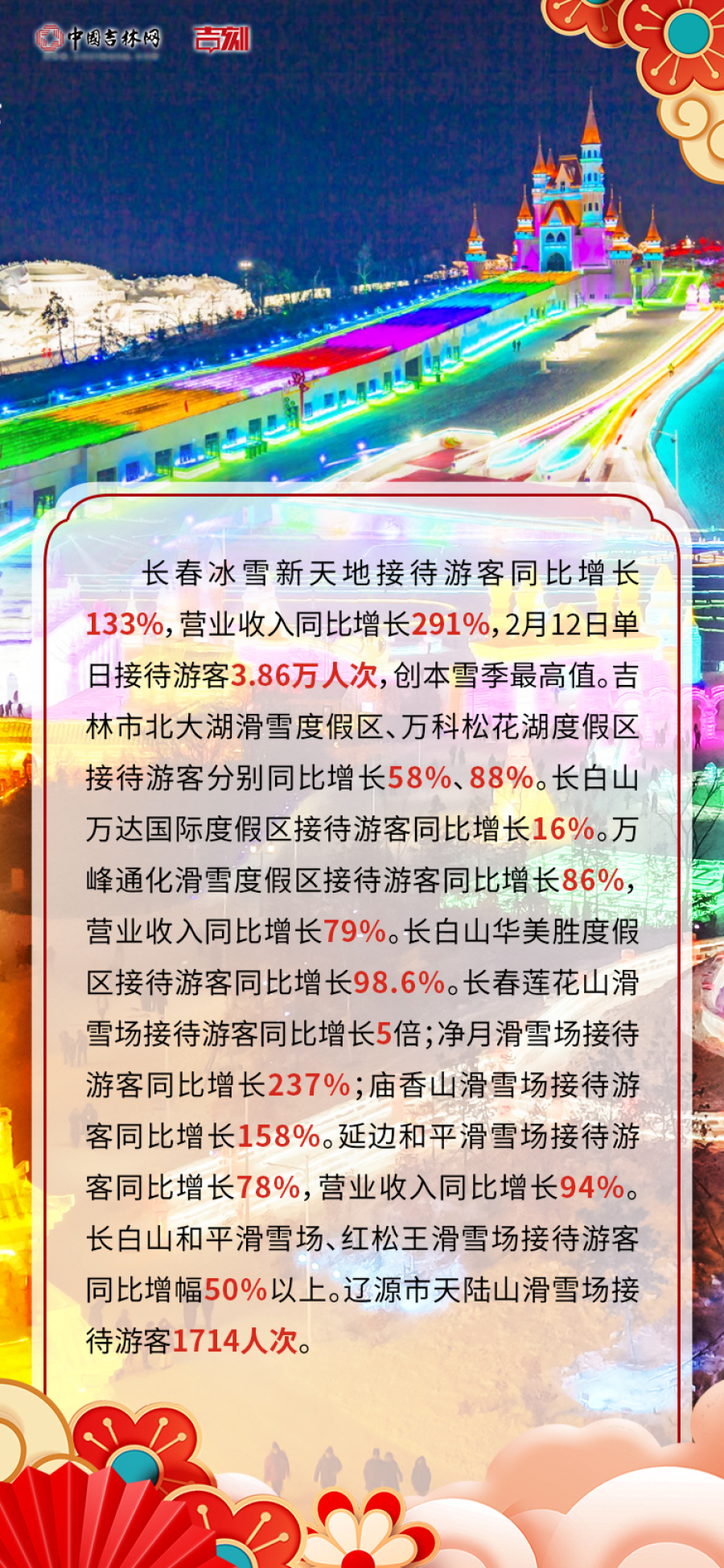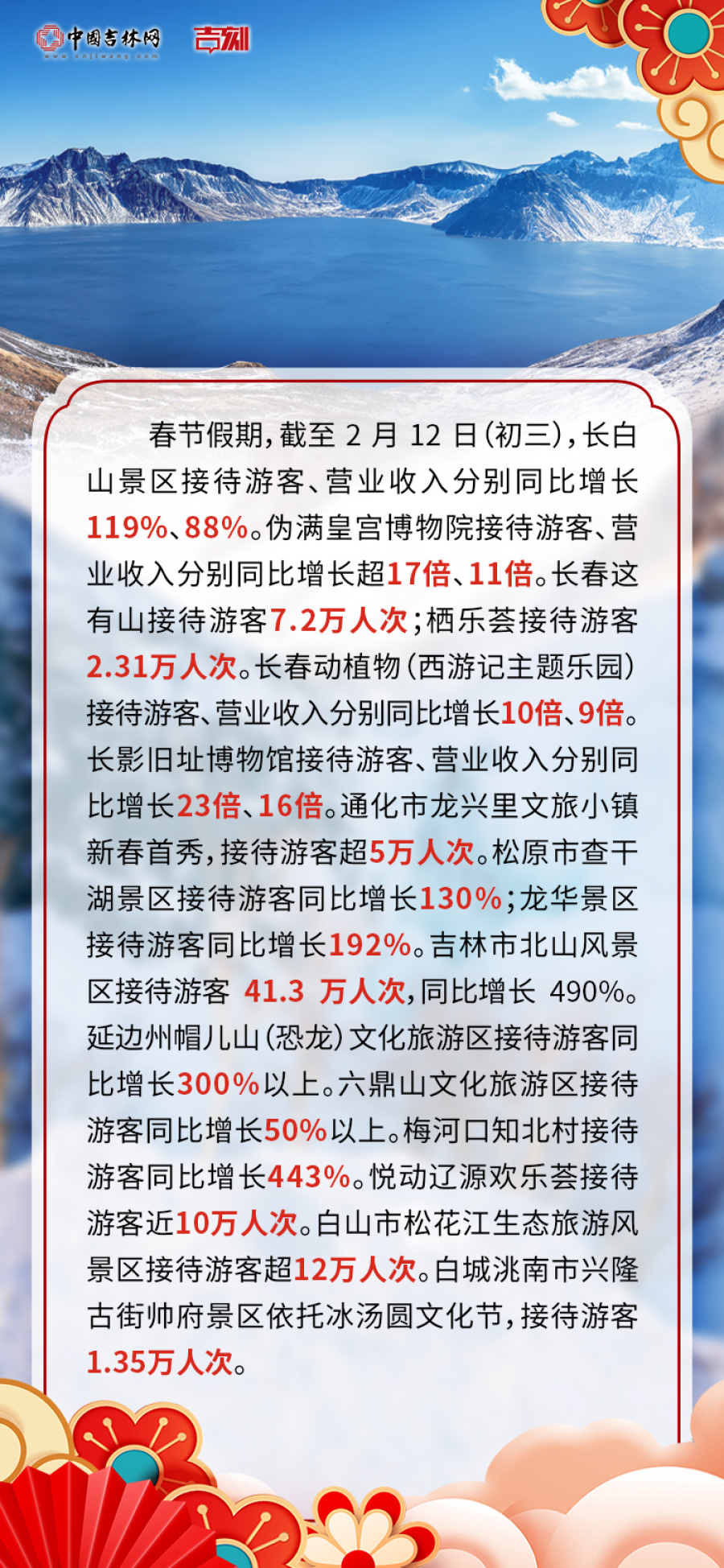 在冰雪游、探亲游、度假游的带动下,景区“爆棚” 、酒店爆满 、导航“红到发紫”,透视数据里的春节档,映射出活力吉林旅游市场。