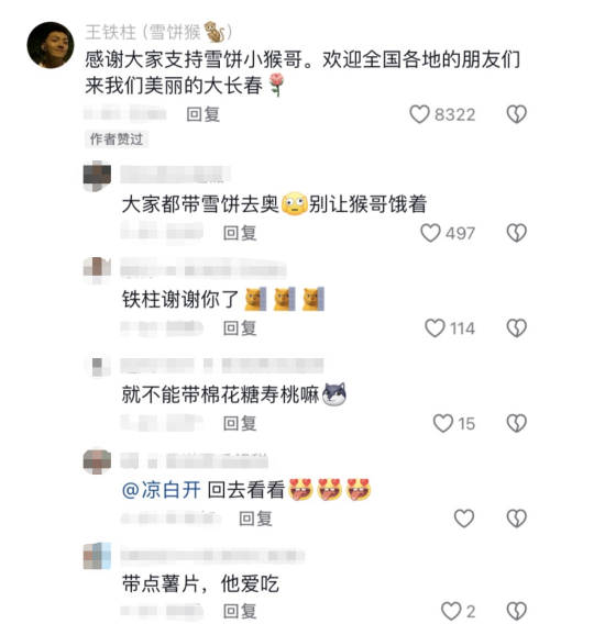 “我都排了20分钟的队了,我给‘雪饼猴’带了一个小饮料,他太有意思了。在网络上关注他很久了,这次春节假期来是希望他为我即将参加高考的学生们录个祝福的小视频。”游客张女士家住在葫芦岛,春节她和家人特意驱车来长春见一见“雪饼猴”。