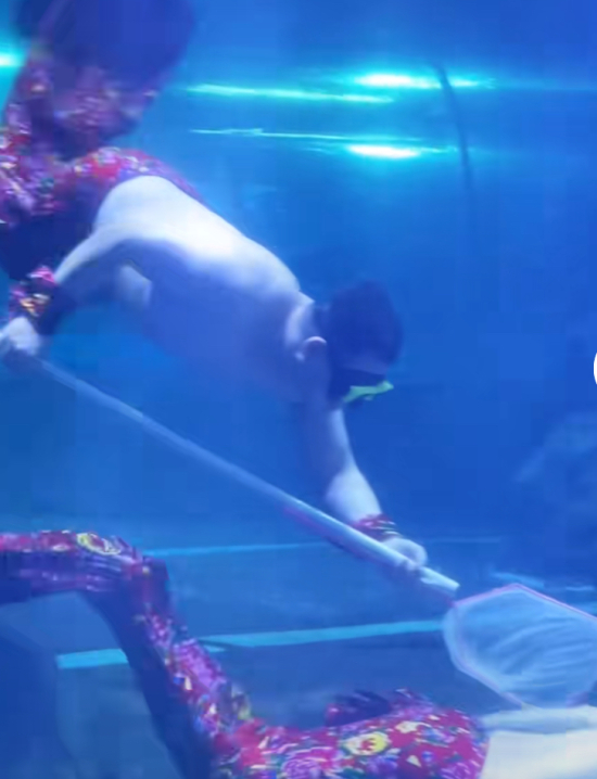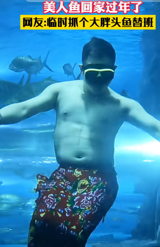 据网友介绍,以往的表演均为“美人鱼”奉上,但春节期间,“美人鱼”回家过年了,便由“大花胖头鱼”替班,令人没想到的是,表演配上动感的音乐,让这条 “大花胖头鱼”悄悄火了起来,并吸引了众多观众前来观看打卡。