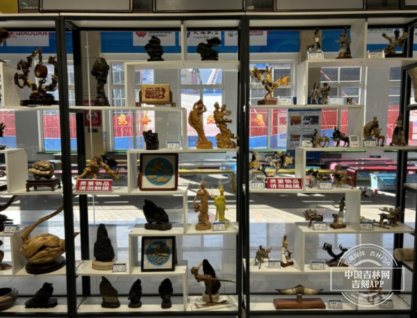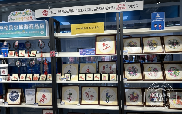 中国吉林网记者在金龙山滑雪场非遗文创展示厅里,剪纸、太阳花、树皮画、麦秆画、炭盘画、工笔画、钢笔画、根艺、泥塑等22种非遗文创产品琳琅满目、美不胜收。内蒙古自治区级非物质文化遗产剪纸项目传承人都叶梅每天都会来到这里,向游客介绍扎兰屯的非遗项目,并手把手教他们剪纸。