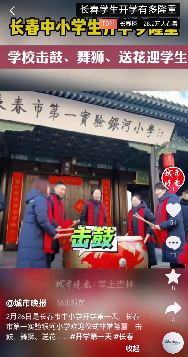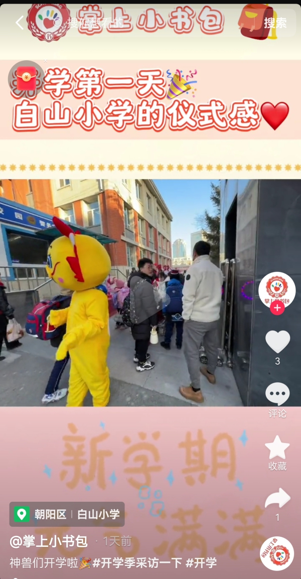 白山小学,可爱的玩偶人迎“神兽”返校。