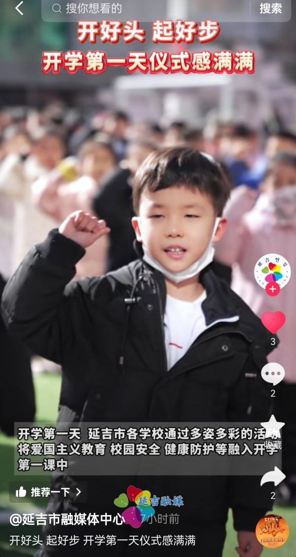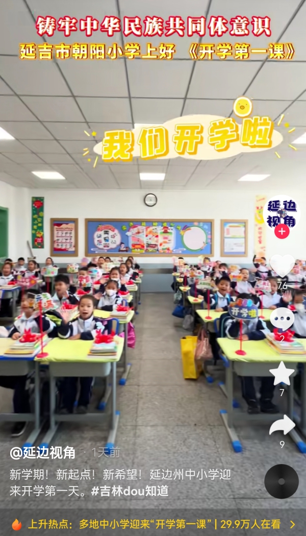 延吉市朝阳小学开学第一课,学生们充满朝气。