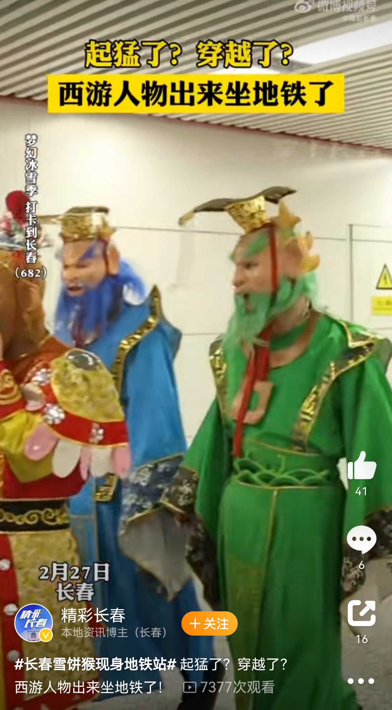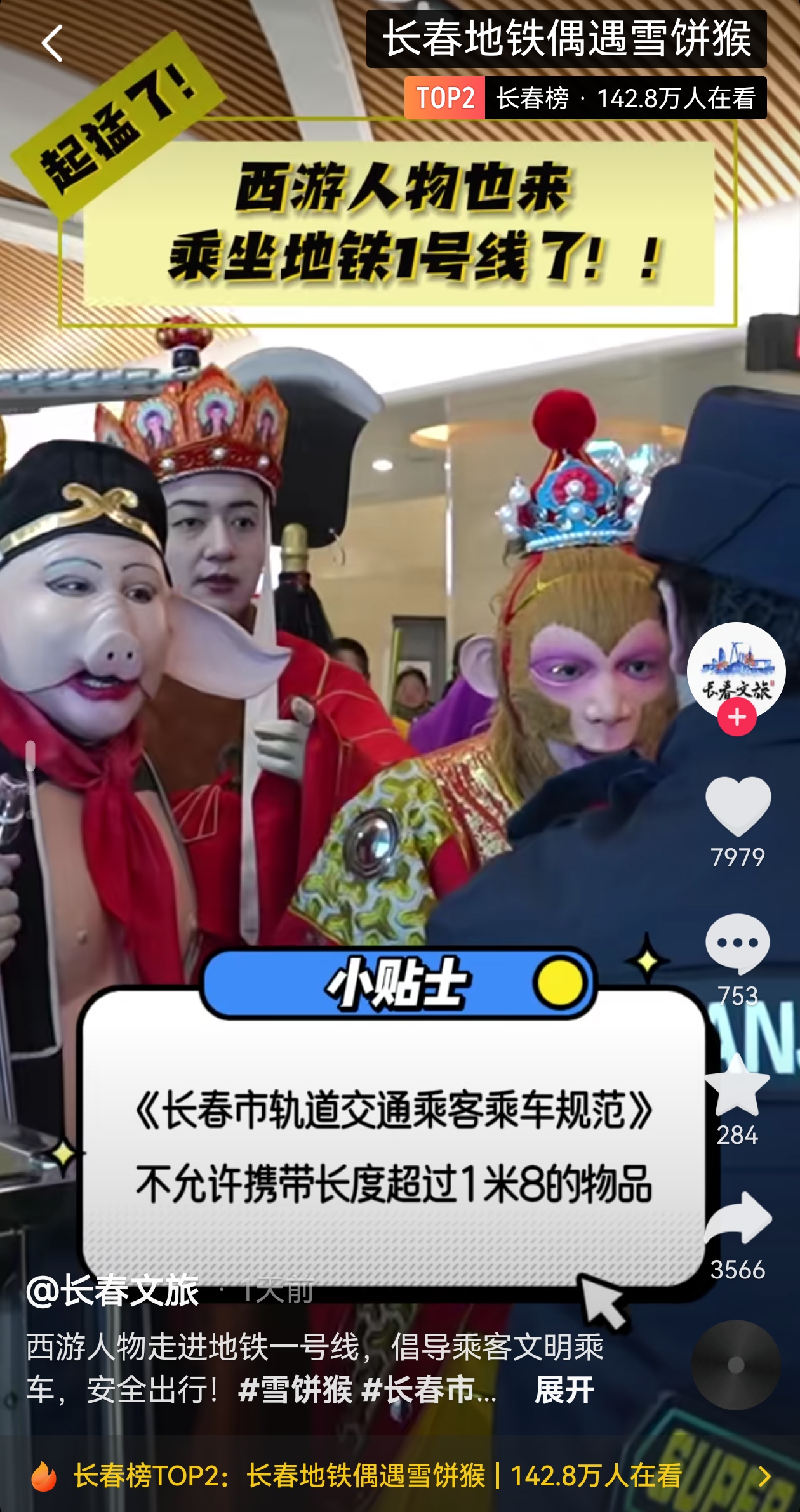 近日,长春市动植物公园的西游记人物也来乘坐地铁1号线了。