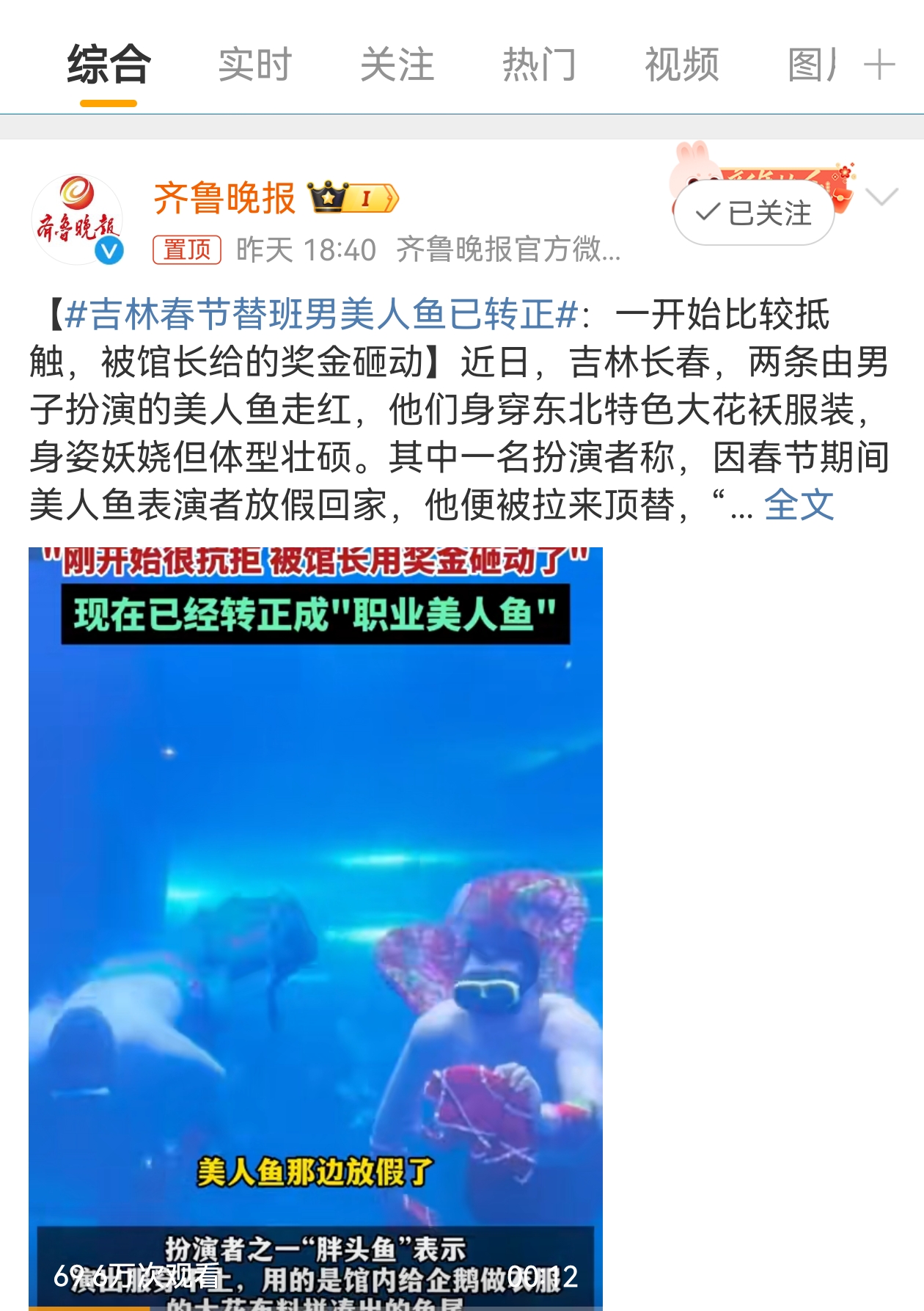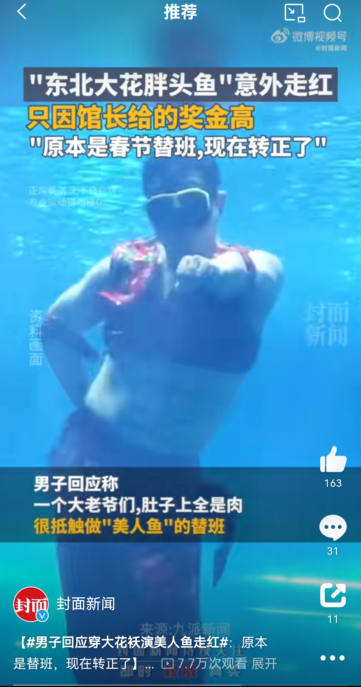 春节期间,还记得那个“美人鱼”的替班“东北大花胖头鱼”么?