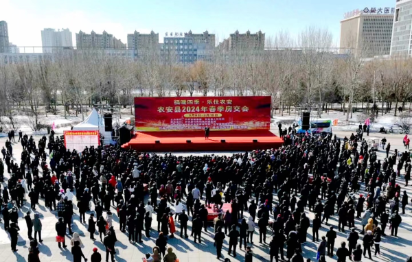 3月8日上午,吉林省农安县2024年春季房交会在农安县龙府广场开幕。
