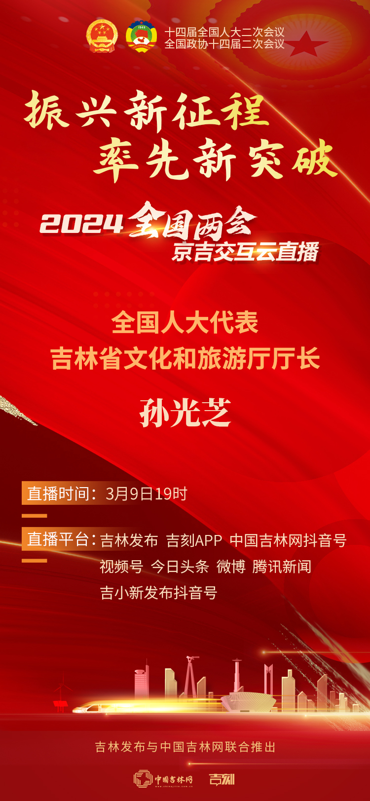 由吉林发布与中国吉林网联合推出的“2024全国两会京吉交互云直播”,以“振兴新征程 率先新突破”为主题。