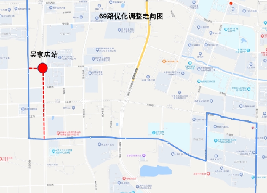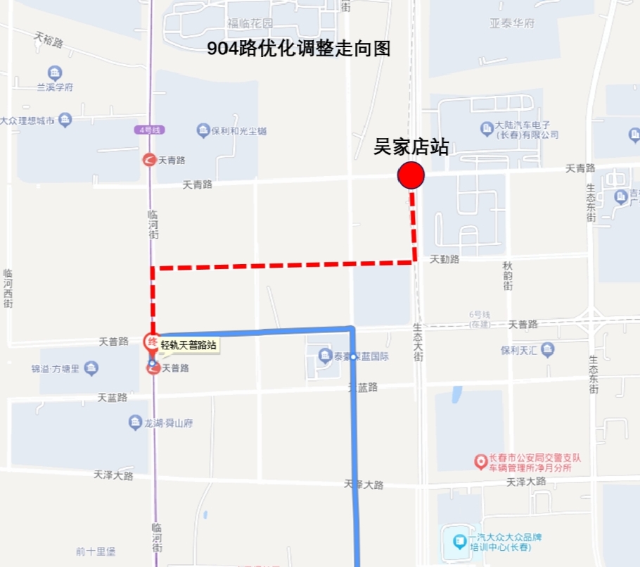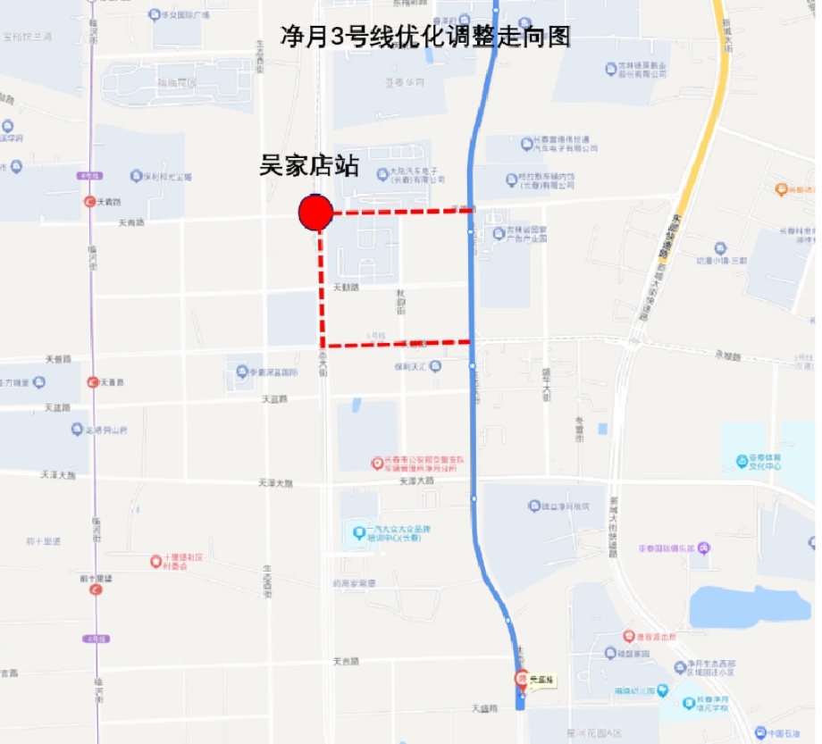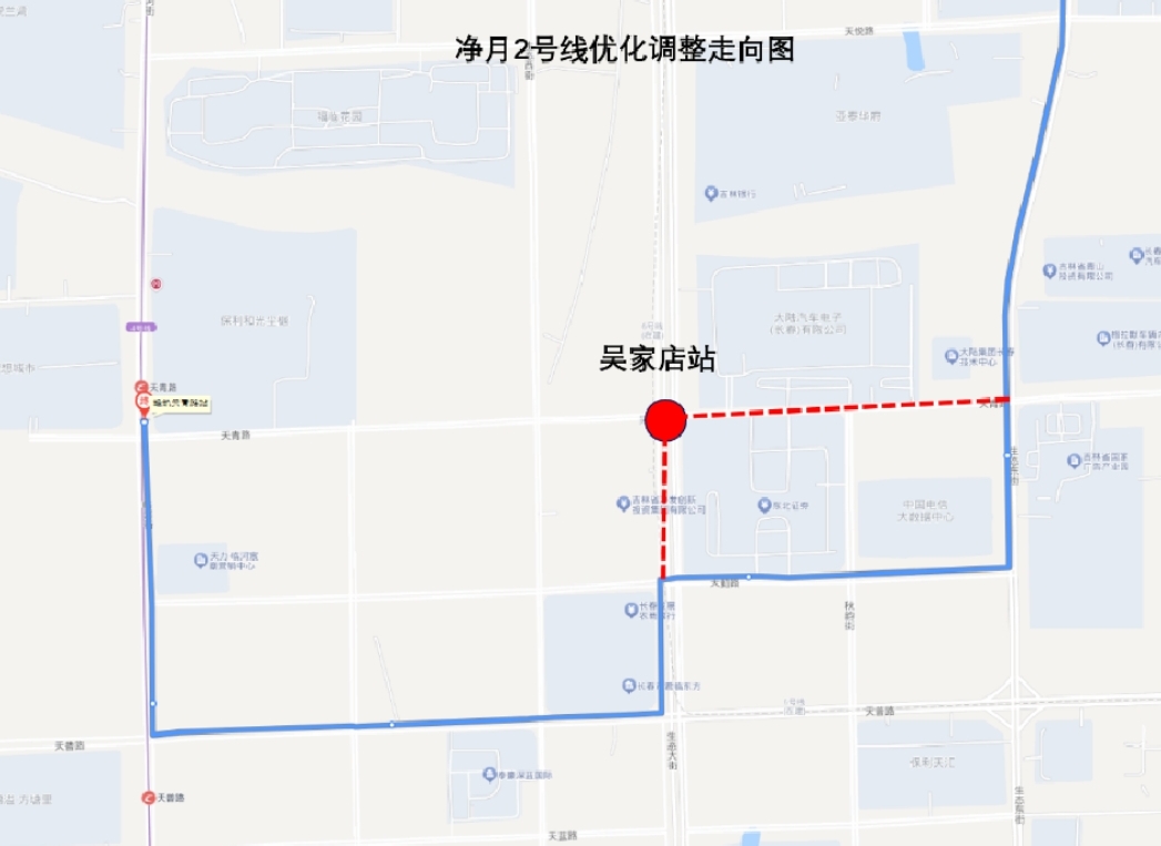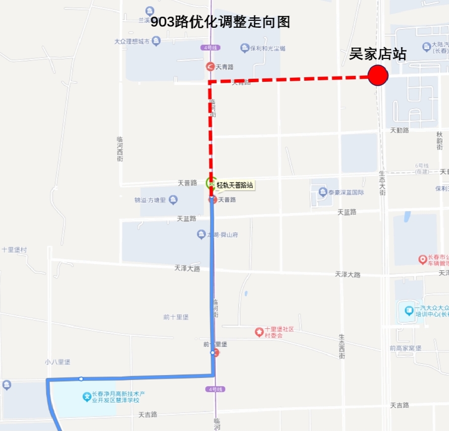线路沿临河街、天青路延长至6号线吴家店站,解决净月星光城小区周边与6号线衔接,满足市民换乘出行需求。