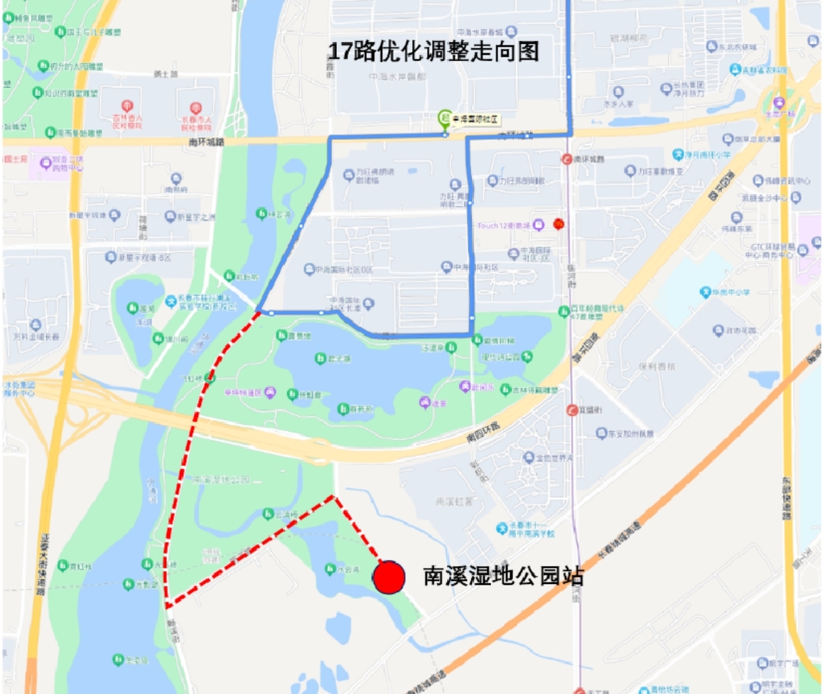 将线路和美路、畅溪街段走向改为溪畔街、听溪路,与6号线南溪湿地公园站衔接,满足市民换乘出行需求。
