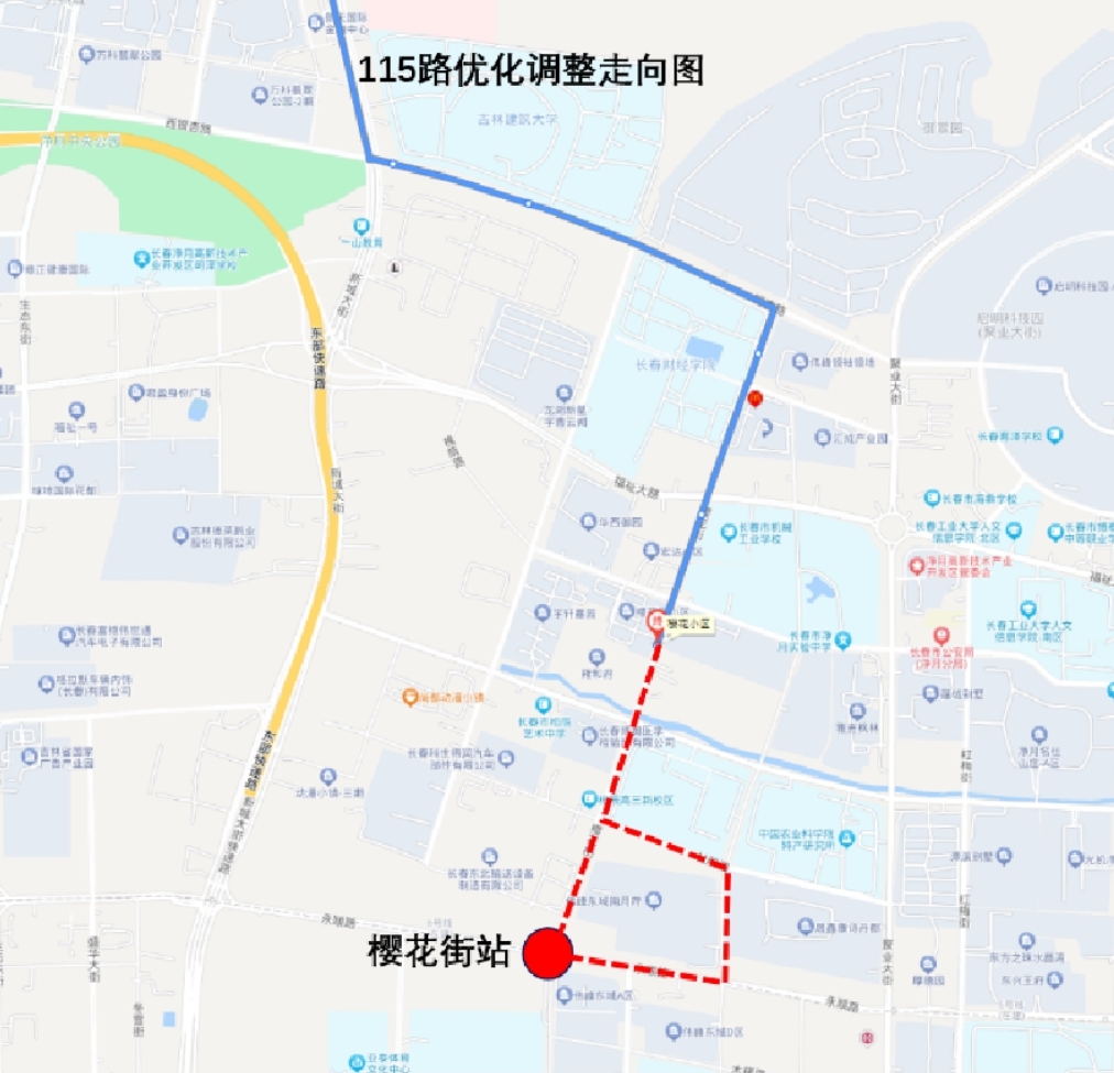 线路终点沿樱花街延长至6号线樱花街站,解决沿线小区、企业和学校与6号线衔接,满足市民换乘出行需求。