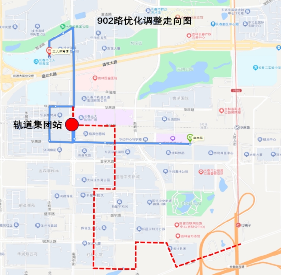 线路调整至华远街、华昌街、华康街、城南大路,与6号线轨道集团站和1号线红嘴子站衔接,解决南部新城周边小区就近换乘轨道交通出行需求。