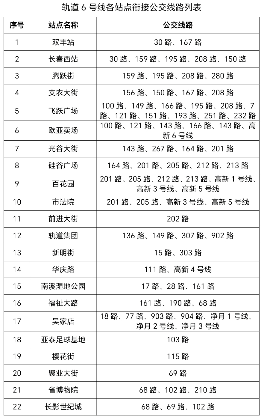 为进一步构建“轨道交通为骨架、常规公交为基础”的公共交通体系,提升公共交通整体服务保障能力,长春市交通运输行业管理部门结合轨道交通6号线近期开通试运营,同步实施第一批11条衔接轨道交通的公交线路优化调整工作,现将具体情况公示如下: