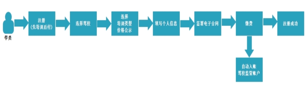 三、先培后付、计时收费:学员账户超过一课时费用即可先参加学习,通过“驾训计时平台”产生课时后,经监管平台审核,每产生一有效课时,则划拨一笔课时费存入驾校账户。