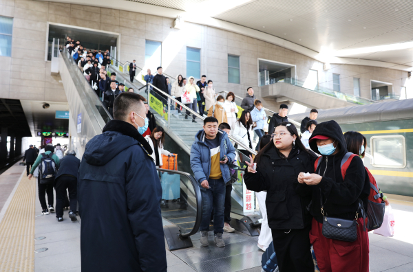 长春站提醒广大旅客,节假日期间客流量较大,坐火车出行请务必预留出充足时间,配合车站做好实名制验证、安检查危、检票进站等工作,有序乘车。