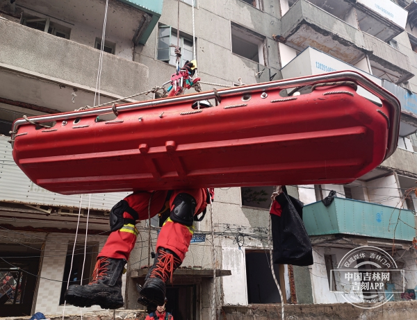 到达“受灾现场”后,现场指挥部下达作战指令。废墟综合救援科目中,指战员分别利用人工、仪器和搜救犬搜救被困人员;狭小空间巷道救援科目中,救援人员进入三节巷道中,利用起重、破拆工具在狭小空间中进行救援行动;山岳、建筑高空救援科目主要考察绳索抛投、固定、攀爬和“T”形绳索救援技术;综合破拆救援科目中,模拟建筑倒塌后有人员被困,指战员按照向上、向下、横向破拆施救被困人员,主要考察纵向破拆、横向破拆、顶撑技术等技术。整个演练过程中,全体指战员快速反应、高效行动,克服了大风、降雨等不利因素,展现出长春支队指战员良好的战斗素养和严明的作战纪律。