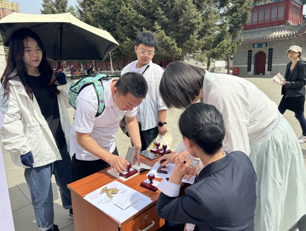 得到“长春文庙印记”打卡宣传册的游客,将一个个印有“鱼跃龙门”“取仕必得”“无我”“一路连科”等象征美好寓意的印章,盖在打卡宣传册上,为自己留下一份难忘的回忆。