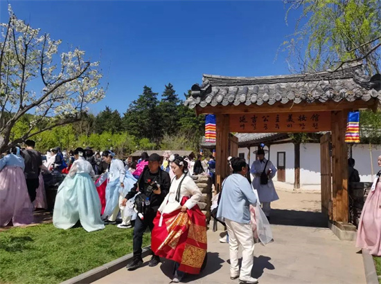中国朝鲜族民俗园游人如织,假期仅2天,就有共8万余人次入园体验特色文化。