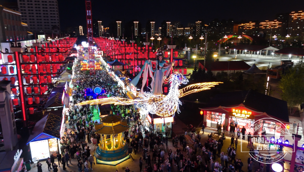 华灯初上,彩灯万盏,梅河口东北不夜城内大批游客汇聚于此。