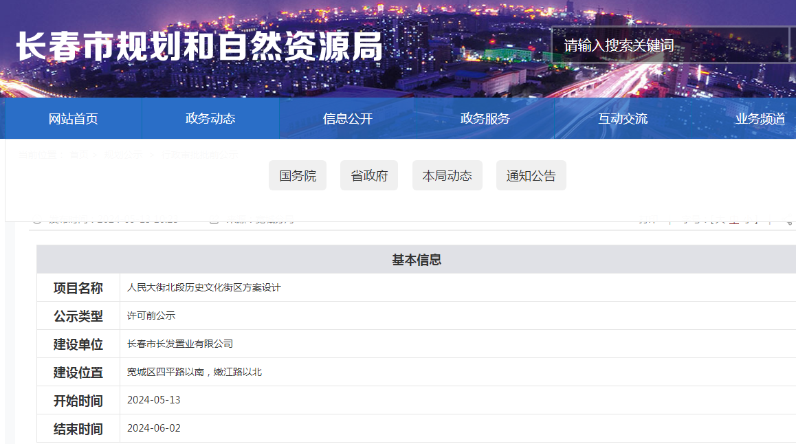 近日,《人民大街北段历史文化街区方案设计》在长春市规划和自然资源局网站进行公示,工程建设位置在人民大街北段宽城区四平路以南,嫩江路以北。