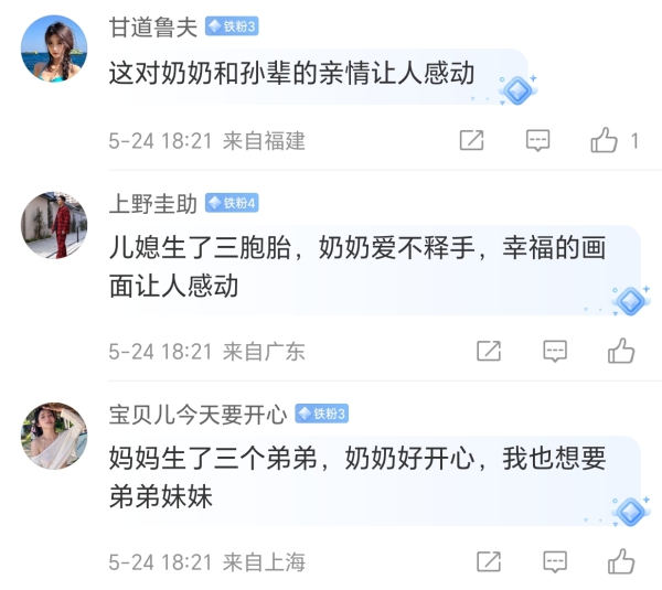 儿媳生了三胞胎奶奶爱不释手