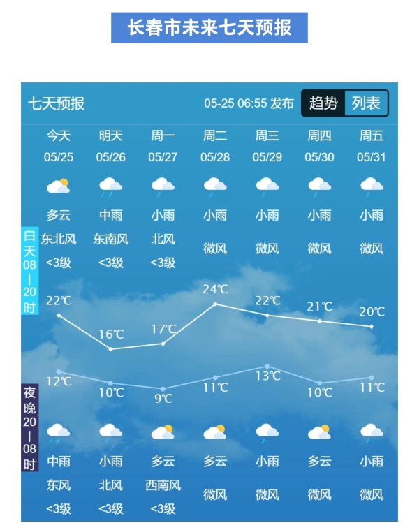 今天午后到明天白天,全省多云转阴,白城南部、松原、长春、四平、辽源、吉林有中到大雨,部分地方有大到暴雨,其他地区有小到中雨。