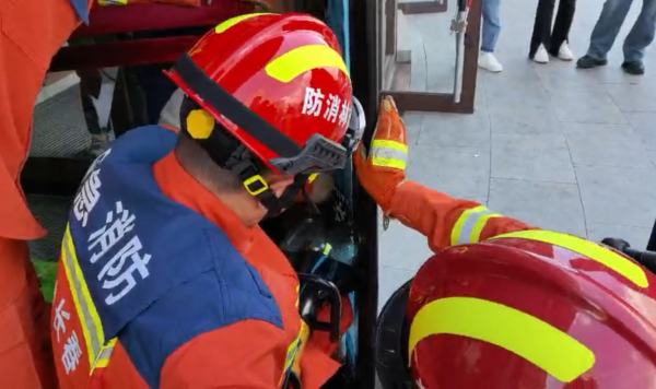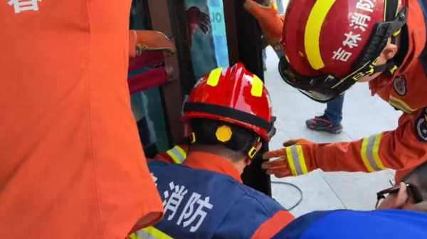 日前,长春市消防救援支队宽城大队凯旋路站接到119调度指挥中心命令,位于北人民大街与万兴路交会附近的一家商场旋转门有一个女孩的脚部被卡,急需救援,凯旋路消防救援站指战员立即出动赶赴现场救援。