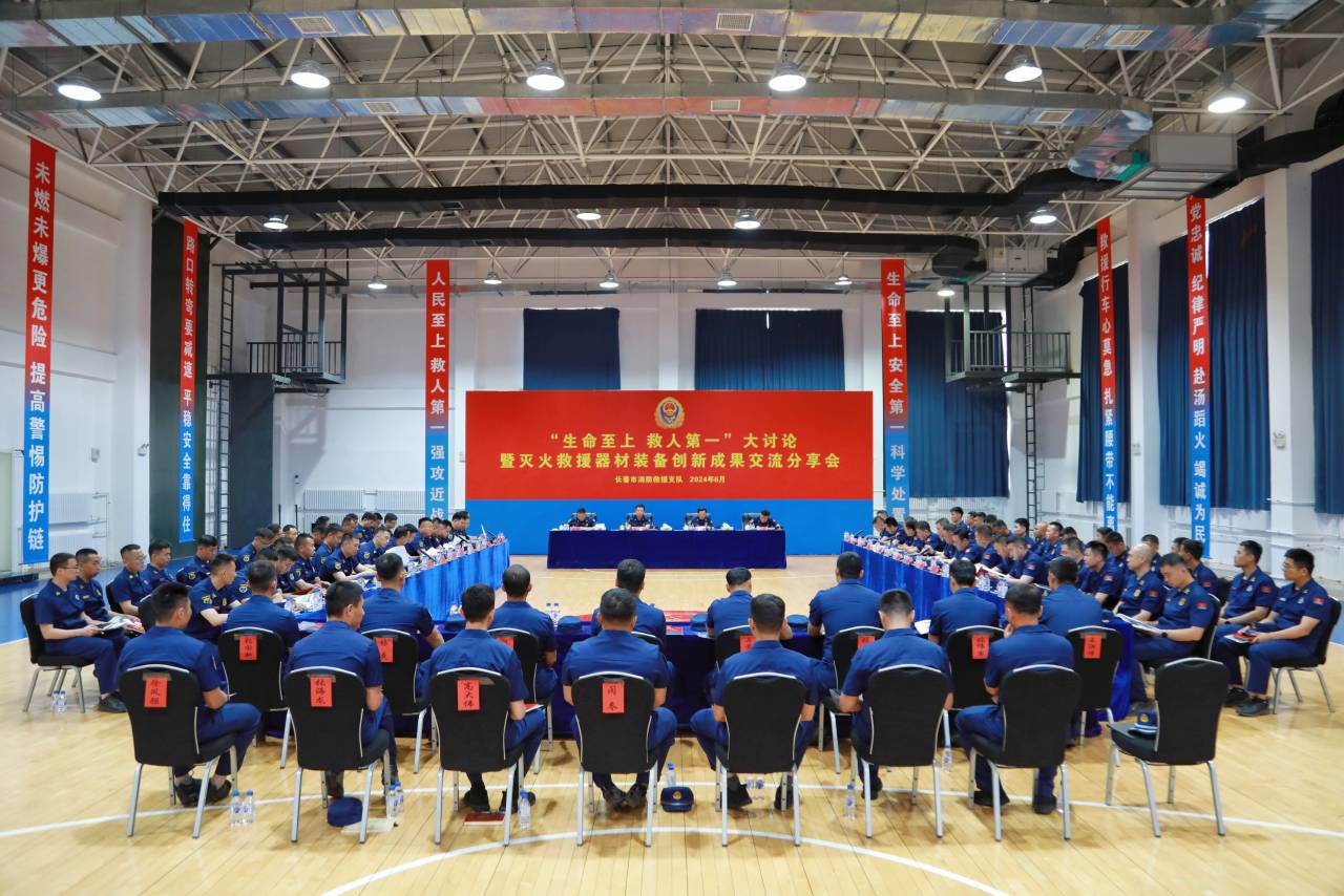此次分享会分为创新器材演示观摩和研讨成果交流分享2个阶段。在演示观摩区,7个队站分别介绍并实操展示了高层灭火救援便携式器材、橡皮艇快速充气装置、新能源汽车灭火战法及相应器材、高效能排烟水枪、安全员携行箱及火场内攻装置、防盗门破拆技术、快速灭蜂枪、灭火救援预案专柜等8项创新成果。在分享会现场,19个大队分别汇报了“生命至上 救人第一”大讨论暨一队一专精工作开展情况,分享了下步工作思路;作战训练处对各大队、站“生命至上 救人第一”大讨论活动开展情况进行小结。