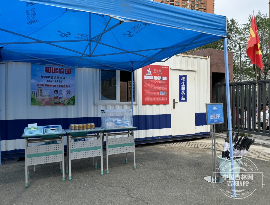 袁波告诉记者,学校门口设立了考生服务站,配置了心理教师、防暑药品、巧克力和一些碳酸饮料。考点还有防雨防晒的长廊,准备了雨伞和雨衣,准备了雨具收纳桶。与此同时,为一名特殊考生配备了专门的人员接送。