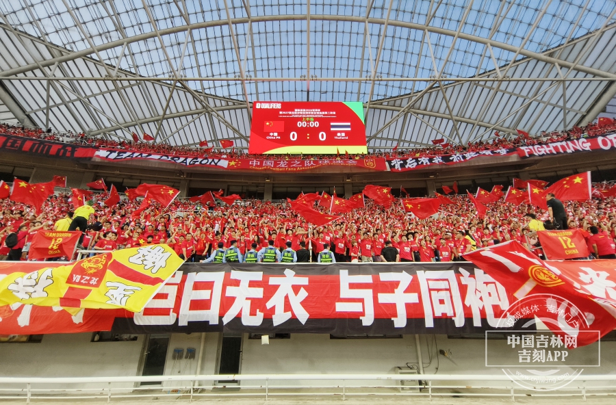 6月6日,在沈阳奥林匹克体育中心体育场进行的2026年美加墨世界杯亚洲区预选赛36强赛中,中国队主场迎战泰国队,现场6万球迷为中国队加油助威。