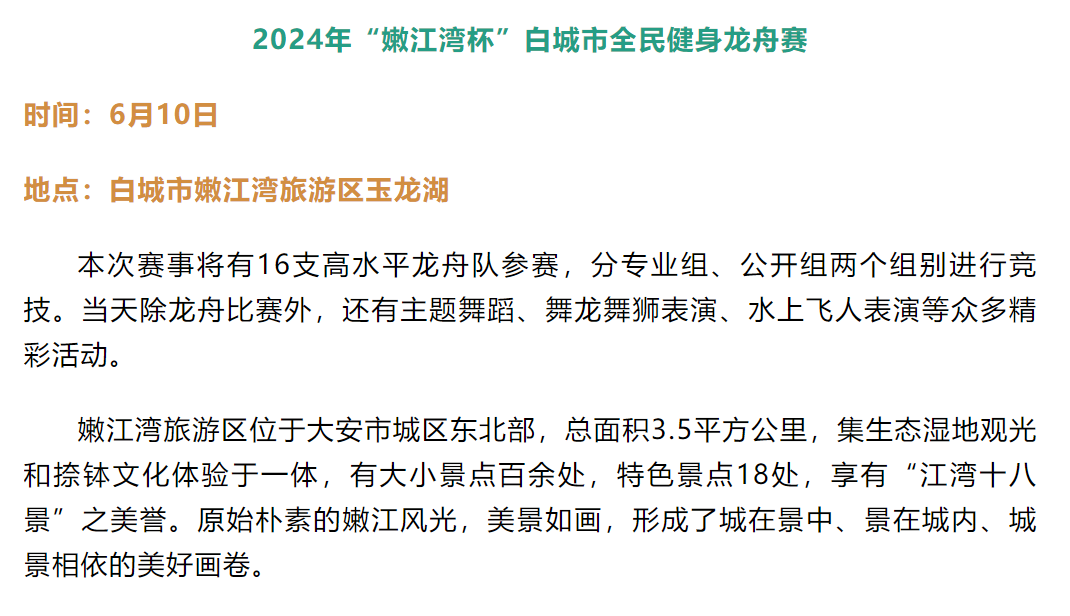 如果还没想好明天去哪儿玩,这条信息您收好,明天,咱就去看龙舟。