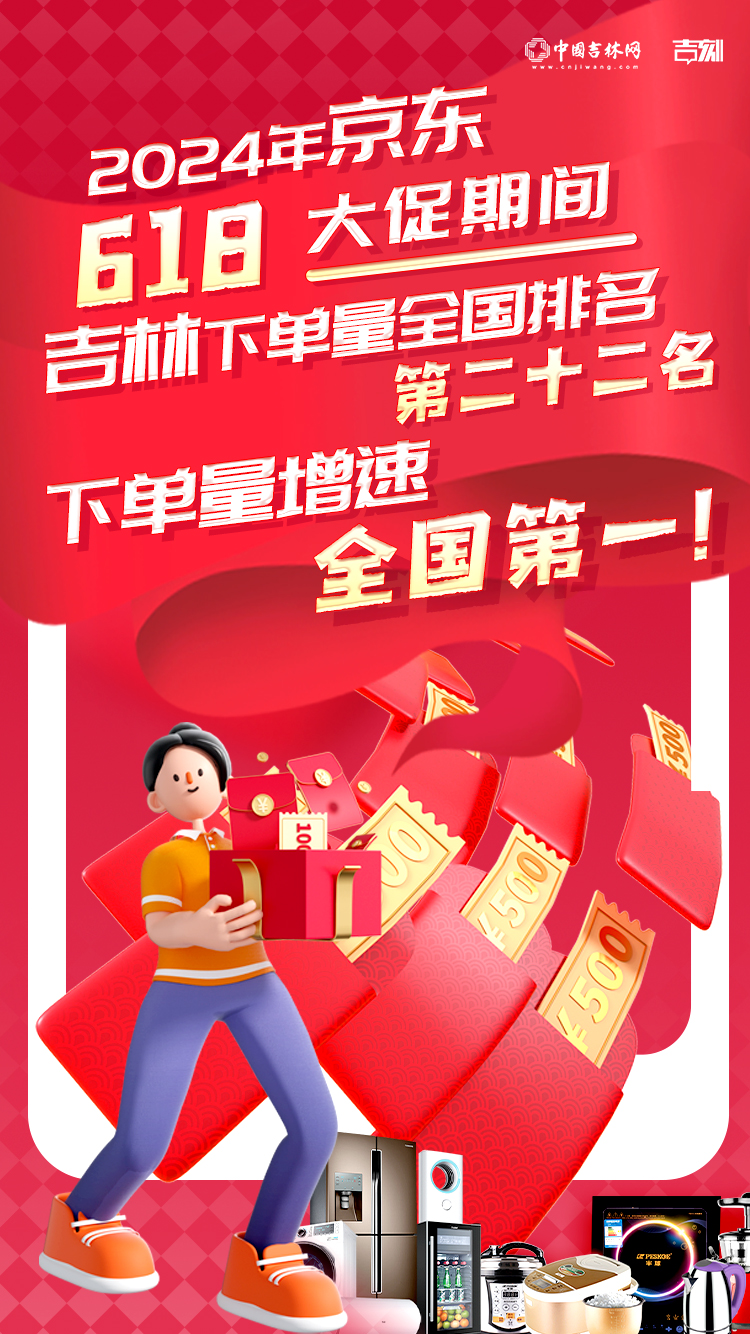 日前,京东发布了一年一度的“618”大促各省市的消费数据,吉林省表现得十分亮眼!“618”期间,吉林省下单量排名位居全国第22位,下单量增速全国第一名,显示出强劲的消费潜力。