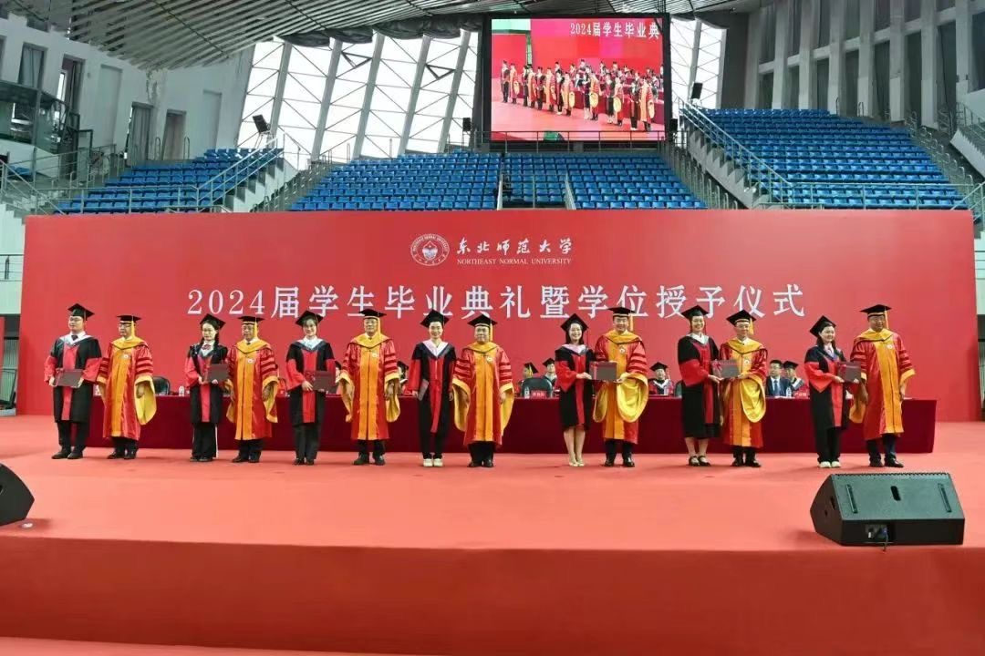 典礼上宣布东北师范大学关于2024届本科毕业生评优表彰的决定、关于2024届毕业研究生评优表彰的决定。