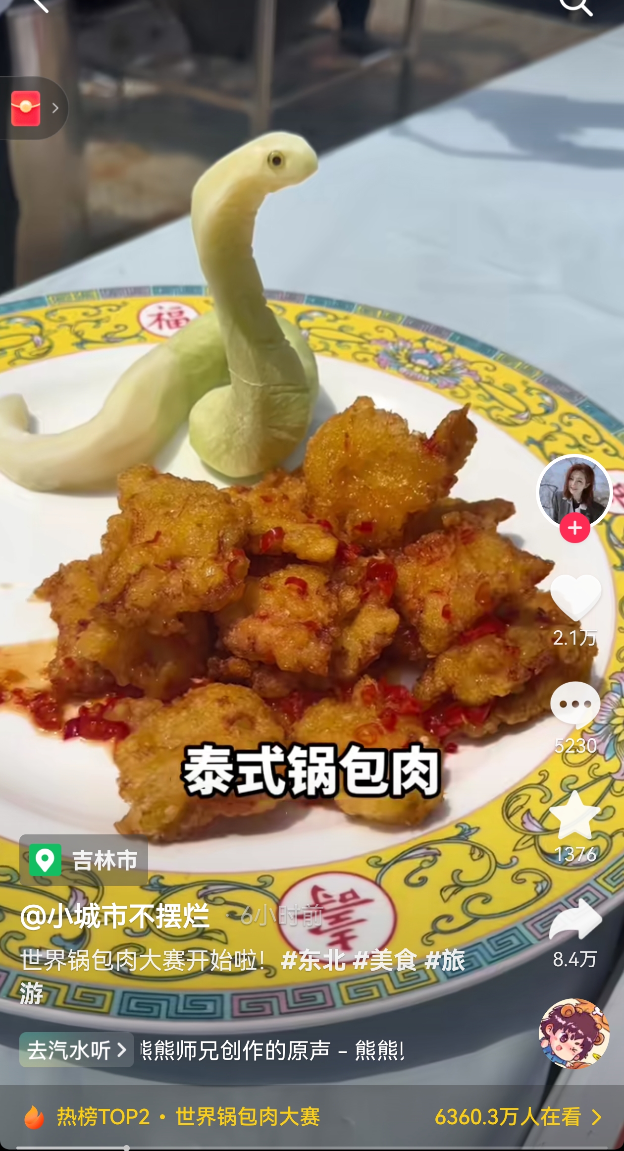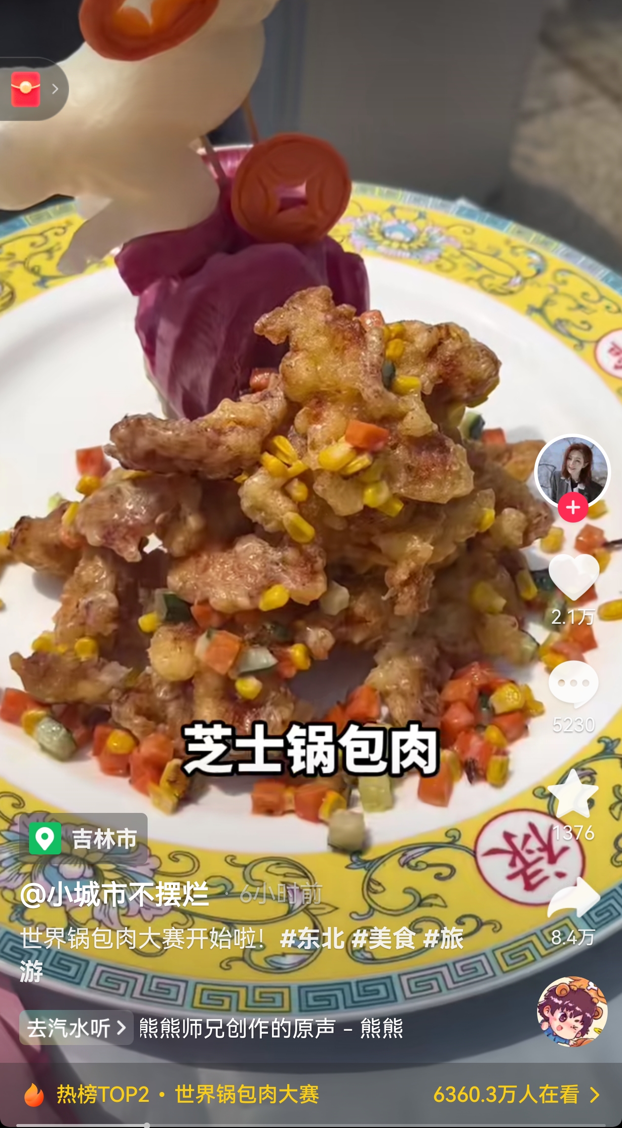 活动现场,榴莲味、咖喱味、百香果味……各种口味、样式的锅包肉,让品鉴官们大饱口福!