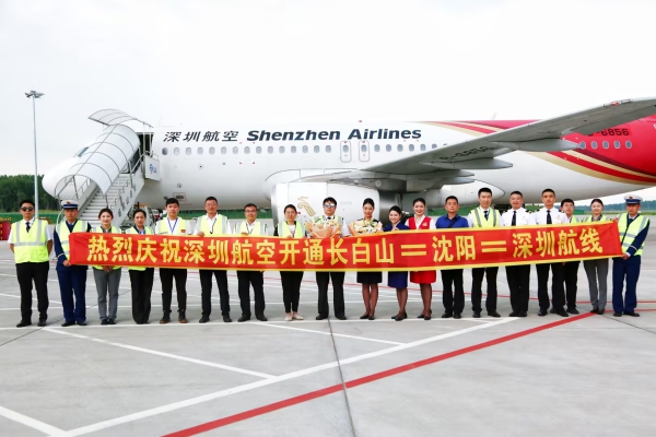 7月5日,长白山机场迎来了深圳航空深圳飞往长白山的航班。15时38分ZH9609次航班顺利平稳的降落在长白山机场,这标志着“长白山-沈阳-深圳”航线成功首航。首批乘客和机组成员感受到了22℃夏天的清爽微风,也感受到了长白山机场工作人员的热烈欢迎。