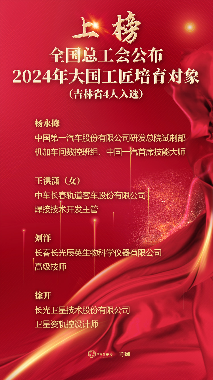 7月16日,记者从省总工会获悉,中华全国总工会日前印发《关于公布2024年大国工匠培育对象并开展大国工匠培育工作的通知》,共有220人入选大国工匠培育对象名单。其中,吉林省有4人入选!