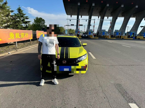 近日,高速公路公安局吉林分局巡逻三大队民警在珲乌高速公路吉林南收费站执勤时,发现一辆黄色轿车颜色十分夺目,根据工作经验,民警判断该车辆有改色嫌疑,随即拦停该车辆。