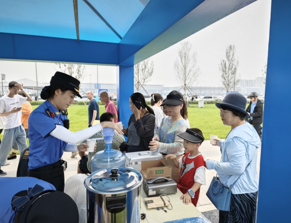考虑到会场周边配套服务设施较少,长春市朝阳区城市管理行政执法局推出一系列举措,为展会的顺利进行和市民的观展体验提供贴心服务。在展区的三个入口处附近的显眼位置,设立了三处“朝阳城管在服务”服务亭,每个服务亭设置2名女执法队员为前来观展的群众提供便捷指引、咨询解答以及临时休息等服务,双休日期间服务群众超6000人次/天、工作日期间服务群众超3000人次/天。为应对展会期间的天气变化,朝阳区城管局准备了2000件一次性雨衣,免费发放给有需要的观展群众。为满足不同市民群体的需求,朝阳区城管局还为老人、小孩以及没带水的市民群众,贴心地准备了冰镇酸梅汤和饮用水,为他们消暑解渴。为了防范可能出现的突发状况,配备了简易医疗箱、移动电源等应急用具。为解决参观者的如厕问题,还在会场4个停车场设置了8座移动式公厕,并安排专人全天负责卫生保洁、设施维修和粪便收集工作。