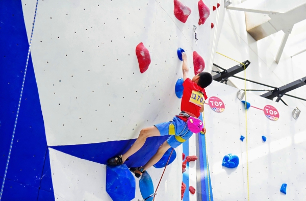 赛场上,参赛选手们出手果断,落脚稳健,沿着预定的路线出发,凭借自身的协调性和柔韧性努力攀爬。无论赛道如何复杂艰险,他们细心观察、冷静判断,每一步的突破都凝聚着顽强的毅力和高度的专注。参赛选手们从精彩激烈的速度赛,到比拼力量、技巧和耐力的攀石赛、难度赛,用自己坚实的基础和挑战自我的精神,上演一幕幕“飞檐走壁”和“岩壁起舞”,选手们尽展攀岩魅力赢得现场观众阵阵喝彩。