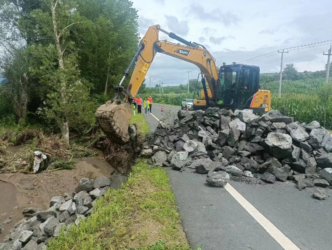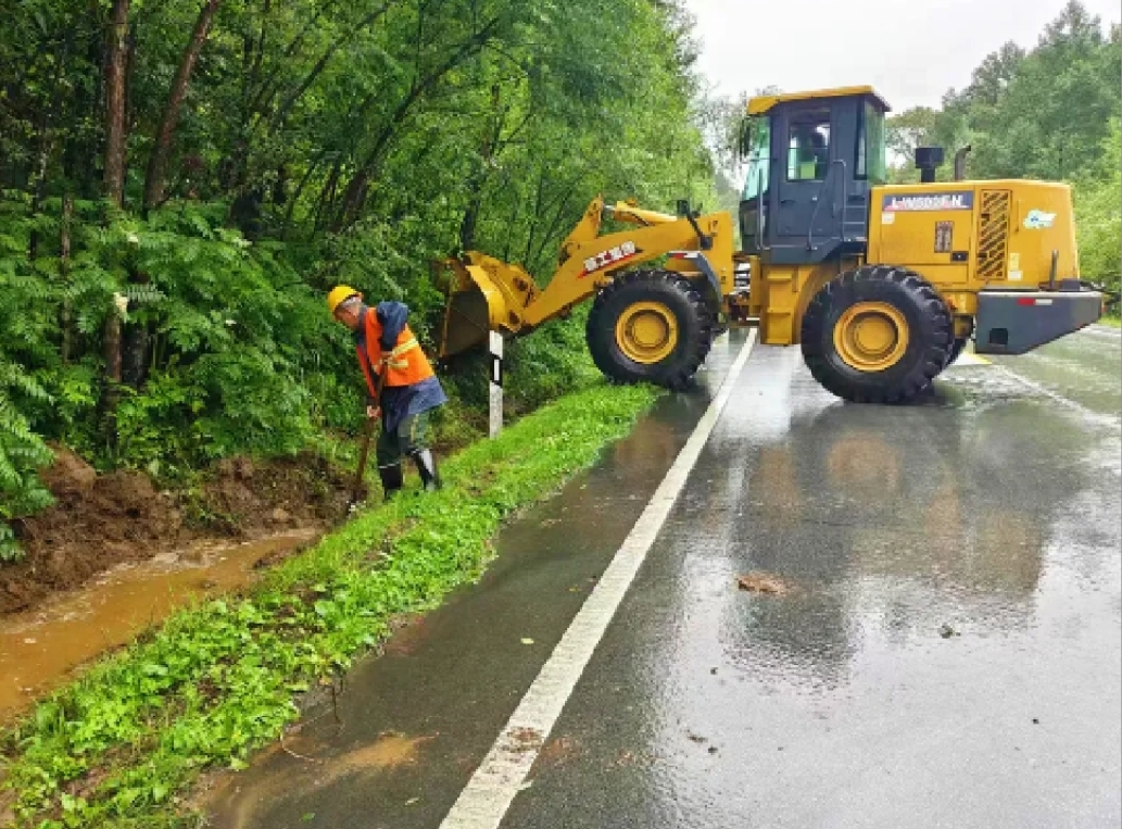 蛟河市公路段全力做好公路抢险保畅工作,组织挖掘机、铲车、养护车快速清理辖区公路砂石淤泥,确保公路通行安全。