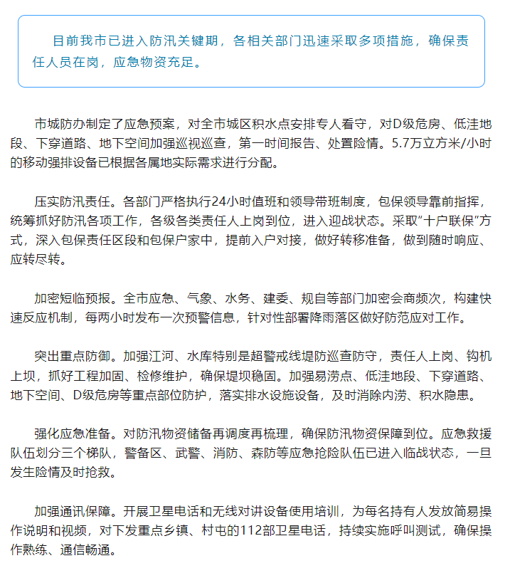 事实上,进入主汛期以来,我省持续出现叠加降水,全省各地早早紧盯灾害性天气过程,做好各方面准备。
