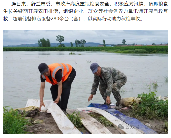 与此同时,以雨为令,闻汛而动。吉林省各地精准科学调度,推动各项防汛措施落实落细,强化防汛队伍和物资保障,提升应急抢险救援能力,全力打好防汛主动仗,保障人民群众生命财产安全。