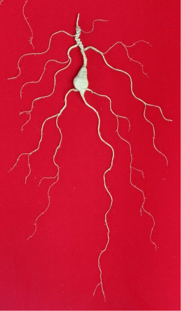 园参在形态上与野山参、移山参差距很大,生长年限多为4-6年,芦较短,多毛毛艼,体粗大,纹不明显,须多而短。